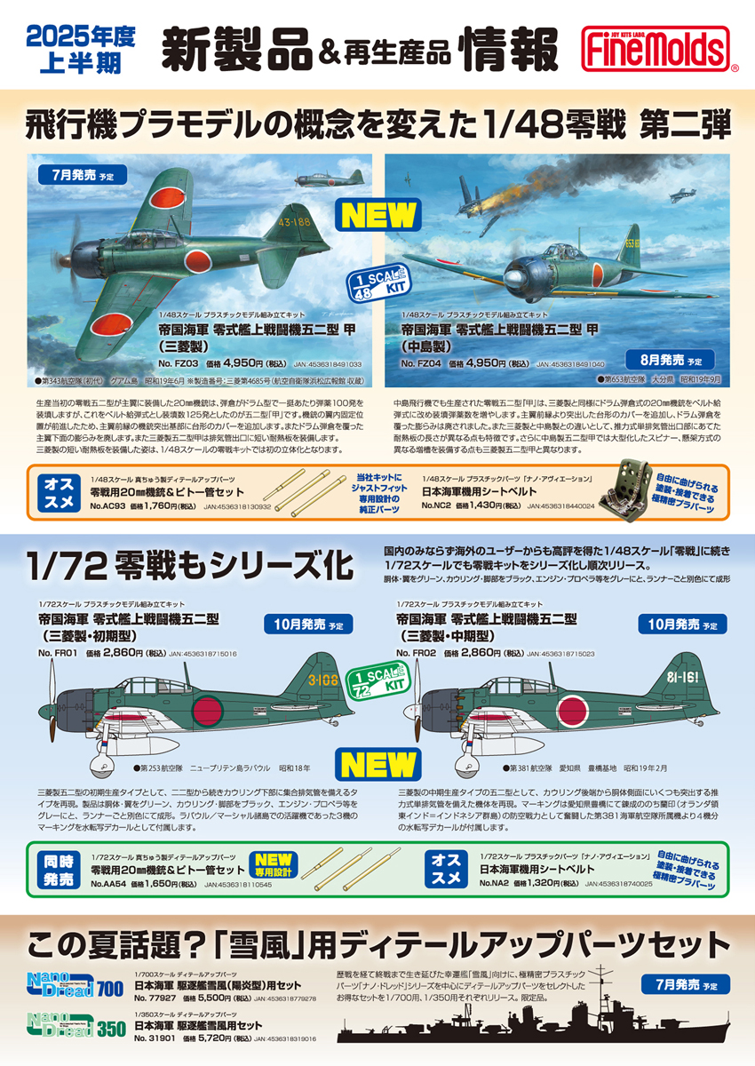 | FZ04 | 1/48 | 帝国海軍 零式艦上戦闘機五二型 甲 (中島製) | 4,500円+税 | 8月 | 4536318491040 | |