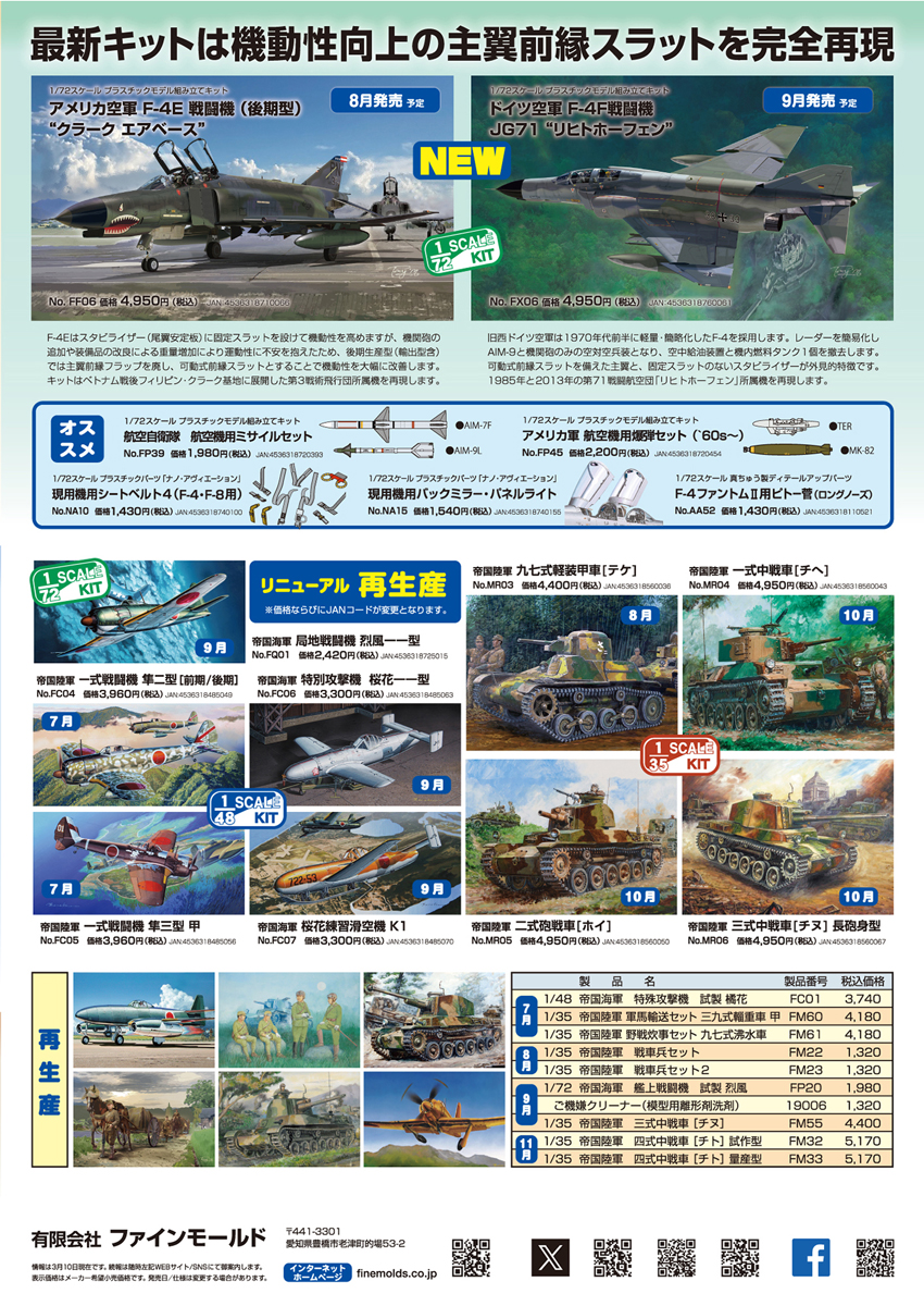 | FX06 | 1/72 | ドイツ空軍 F-4F戦闘機 JG71 “リヒトホーフェン” | 4,500円+税 | 9月 | 4536318760061 | |