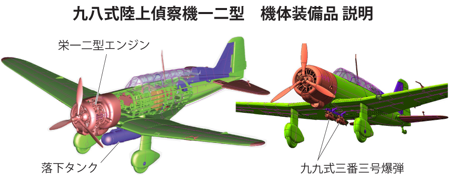 一二型は零戦二一型と同じ栄エンジンを装備し、真珠湾攻撃直後より始まるフィリピン航空戦においては戦闘機隊の誘導任務をはじめ各地で活躍。後のラバウル航空戦ではB-17重爆撃機の編隊を三号爆弾にて攻撃、撃墜したと伝えられるなど空戦任務まで果たしています。