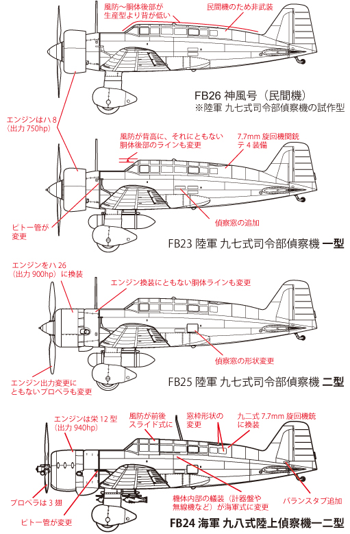 高性能と評された陸軍の九七式司令部偵察機に着目した海軍が、仕様を海軍式に改め制式採用したのが九八式陸上偵察機です。戦闘同様に重要な任務である各種の偵察任務(爆撃誘導・先行偵察・天候偵察)に従事しました。