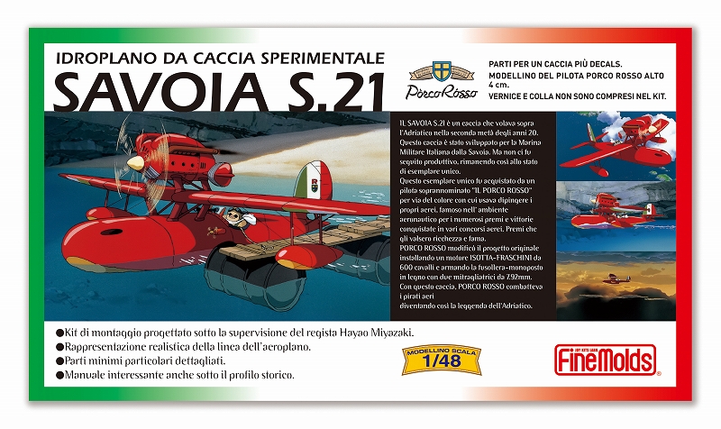 | 宮崎駿監督映画「紅の豚」で主人公の愛機として、画面狭しと活躍した飛行艇を1/48スケールにてプラモデル化。1/72スケールに比べ倍の大きさとなることから機体全形を新たに設計。アニメの設定資料はもちろん設定上の時代に実在した飛行機の構造を考証、機体内部やエンジンも再現しました。映画の楽しさと模型づくりのおもしろさを共に感じていただけるよう、実機が存在したかのような機体解説書を付属。 |