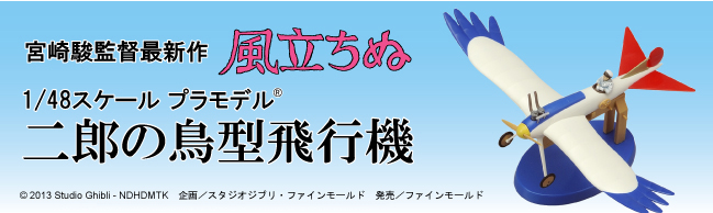 スタジオジブリ最新の劇場公開アニメ『風立ちぬ』より。ストーリーのもう一つの軸となっていた、二郎の設計する「九試単戦」を精密に再現。実在した機体のスケールモデルとして、かつ映画のイメージも重ねたパッケージングで模型化です。