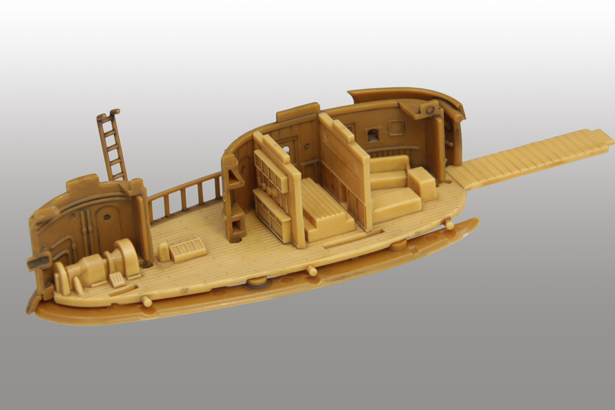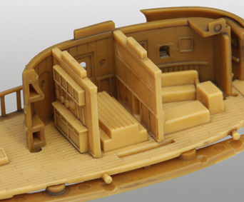 船内は船長室や、キッチン、食堂など船体内部も再現。また同スケールのフラップターもセット。さらに1/20スケールの組立式ドーラ(未塗装)も付属します。