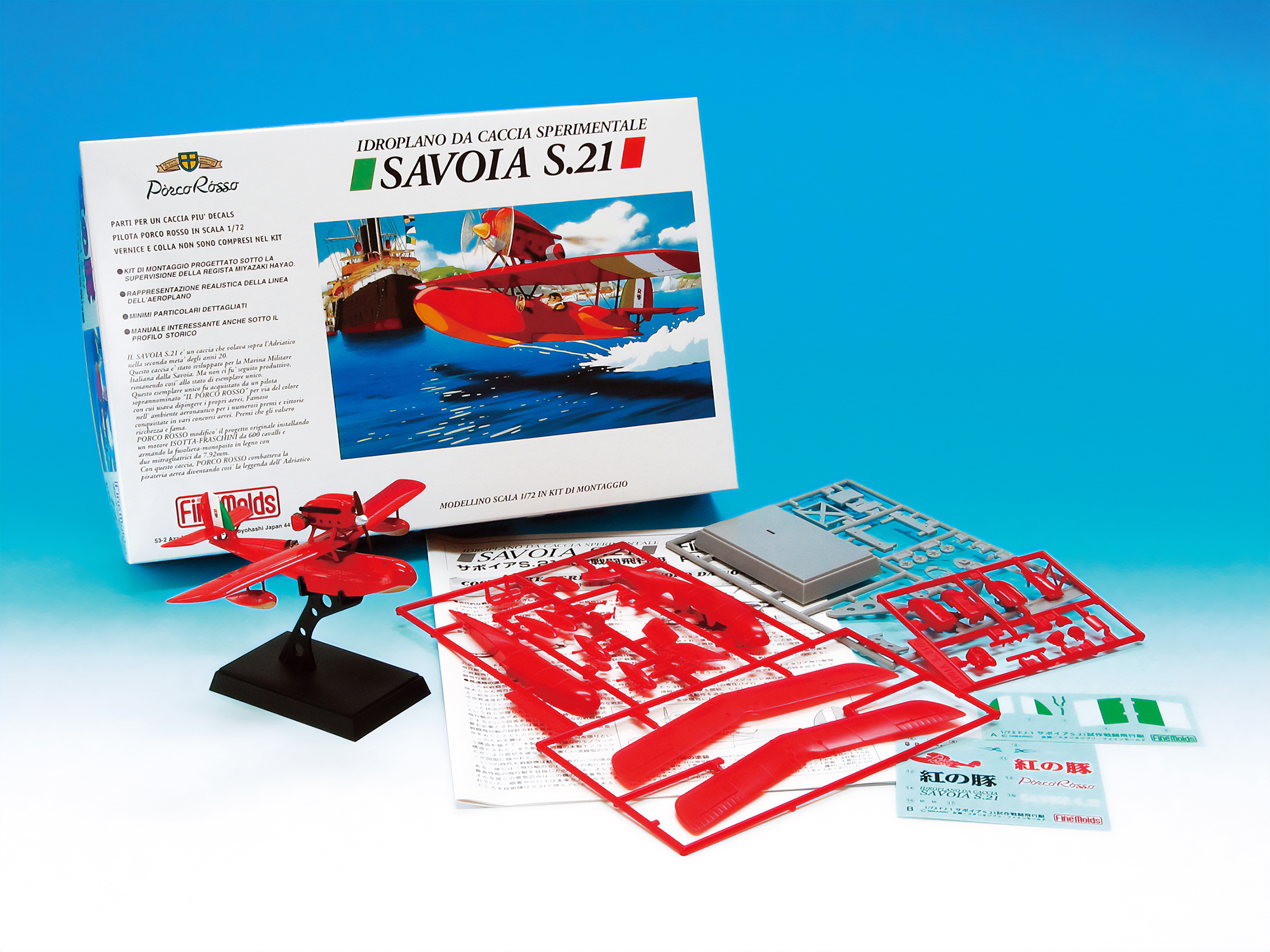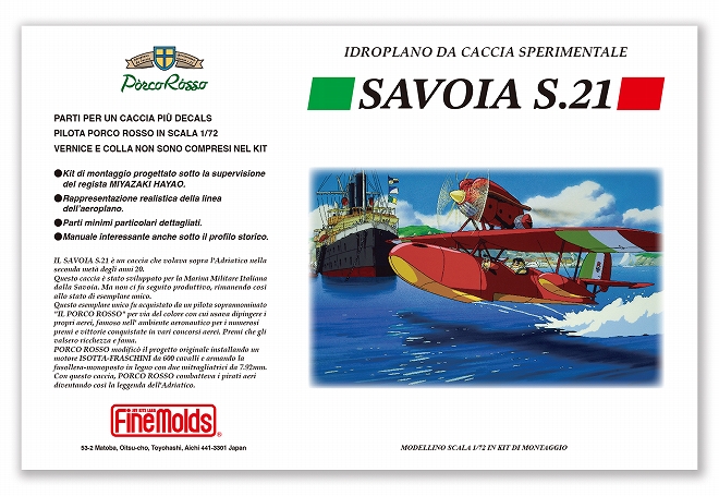 | 宮崎駿監督映画「紅の豚」で主人公の愛機として画面狭しと活躍した飛行艇を初のプラモデル化。設計にあたってはアニメの設定資料はもちろん、映画上の時代に実在した飛行機の構造をエッセンスに加え、宮崎監督の監修により形作りました。映画の楽しさと模型づくりのおもしろさをともに感じていただけるよう、実機が存在したかのような機体解説書を付属しています。 |