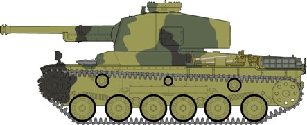 三式中戦車[チヌ]は大戦中に開発/量産された最後の中戦車で、それまでの中戦車に代わって戦車部隊の中核になるべく本土決戦を前に配備されました。主武装には三式75mm戦車砲II型を装備し、その強力な火力で連合軍のM4シャーマンに対抗できる戦車として期待を集めました。 |