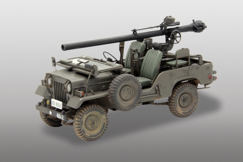 部品点数108点、完成時の全長120mm、全幅57mm、高さ62mm (概算) 無反動砲はAFV CLUB製 |