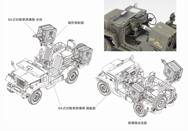本キットでは、この64MATを専用パーツで再現。73式小型トラック専用の架台、誘導操作用の操縦機、誘導弾本体であるATM-1Bに至るまで、細部にこだわった精密な造形で再現しています。