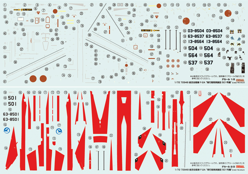 ●成形色を白として、一部を除き機体の赤色塗装部をデカールにて再現