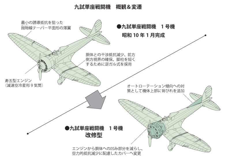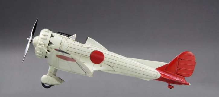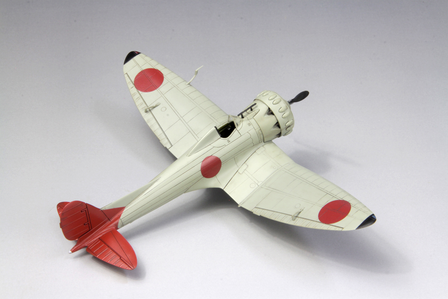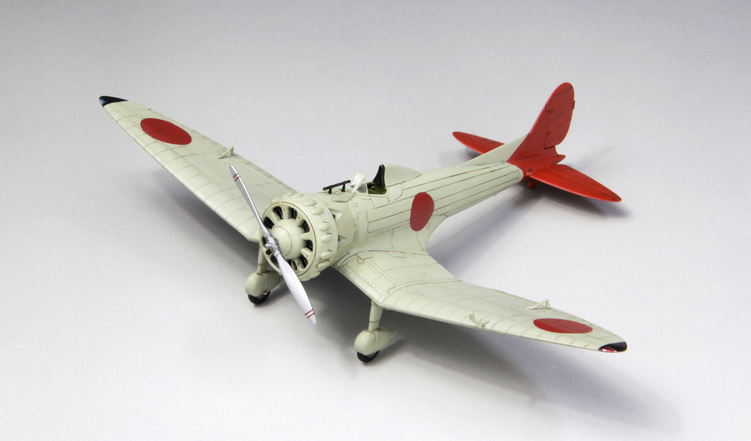零戦が採用される以前の海軍主力戦闘機であった九六式艦上戦闘機。その試作機が九試単座戦闘機であり、堀越二郎が後の零戦設計にも繋がる斬新な設計によって作られました。試作機として数種の機体形状が模索されましたが、当キットではその中でも一際個性的な、逆ガル翼と多数の突出部を持つカウリングを有するタイプを再現しました。このタイプは試作1号機を改造したもので、実機写真が今でも伝えられています。