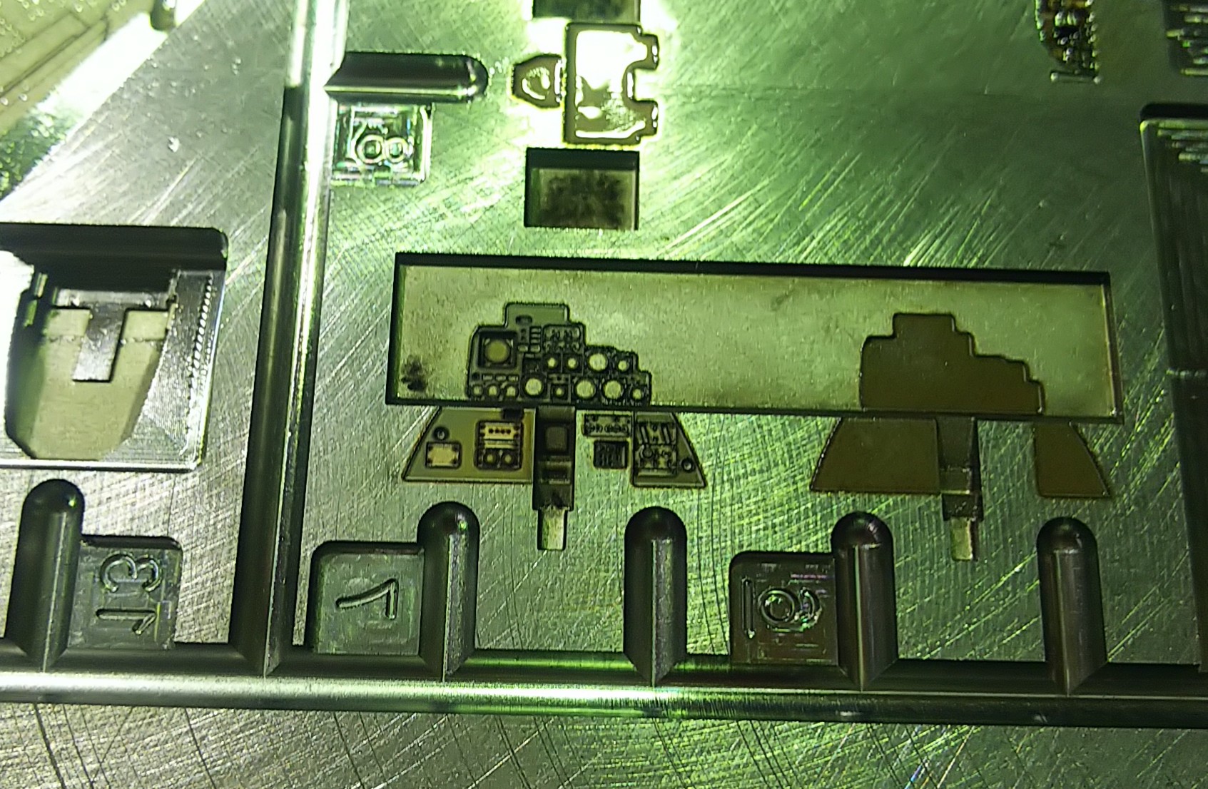 ![]() 上および右画像は成形品にスミ入れを行った写真です |