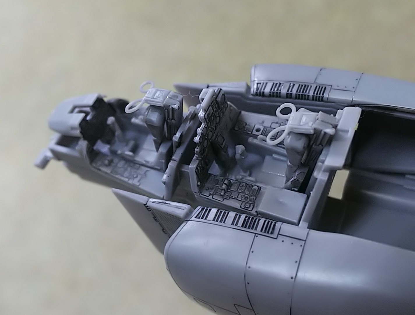 | 計器パネルはF-4EJ・F-4EJ改の違いを再現します(写真は全てF-4EJ改)。 またデカールが貼りやすい平滑な計器盤と、微細彫刻を施した計器盤が2種付属します |