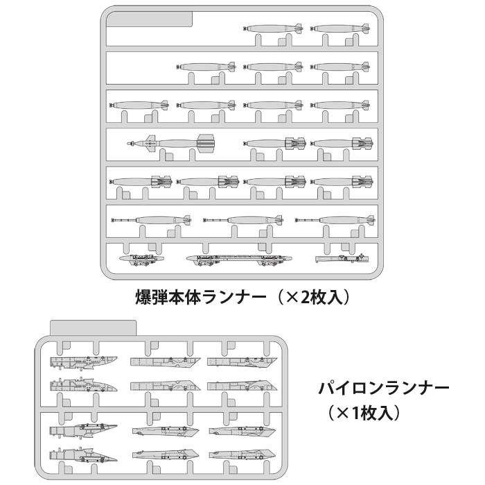 1/9ステーションパイロン、2/8ステーションパイロン、トリプルエジェクターラック3発用×2、マルチエジェクターラック6発用×2、マルチエジェクターラック取付用センターパイロン×1 |