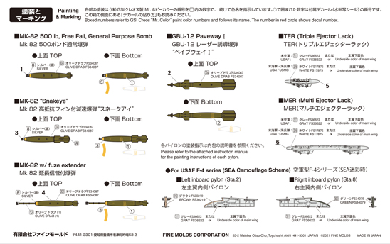 セット内容は、Mk82爆弾×18、Mk82延長信管付爆弾×6、GBU-12×2、Mk82爆弾スネークアイ×12、外翼パイロン左右×各2、