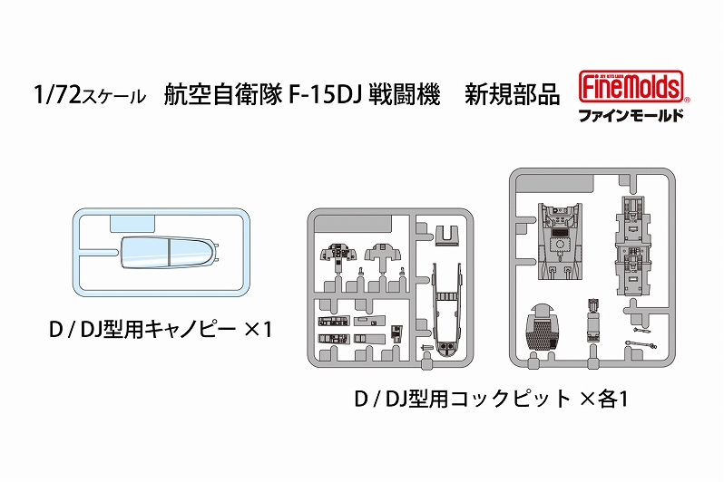 F-15戦闘機各タイプに対応した機体側面に装備された長方形のフォーメーションライトと、チャフ/フレアディスペンサーを精密プラパーツで再現。極薄のプラパーツは立体感と精密感を際立たせます。F-15Jキットと同時発売。