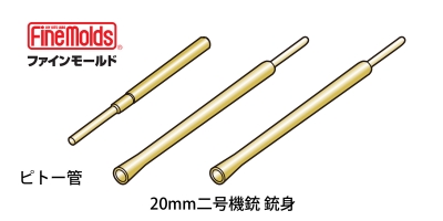 五二型などに装備された、翼より突出した長銃身の九九式20mm二号機銃の銃身とピトー管を真ちゅう製挽き物にて再現しています。