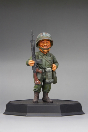 | 漫画家・鳥山明氏のデザインと監修による兵士たちです。コミカルにディフォルメされたフィギュアをプラスチックモデル組み立てキットで立体化。銃や装備品は出来る限り1/12スケールで正確に再現し、かつ実物資料や写真等による考証をしています。貴重な鳥山氏描きおろし作品による装備品の解説書も付いています。台座付。 |