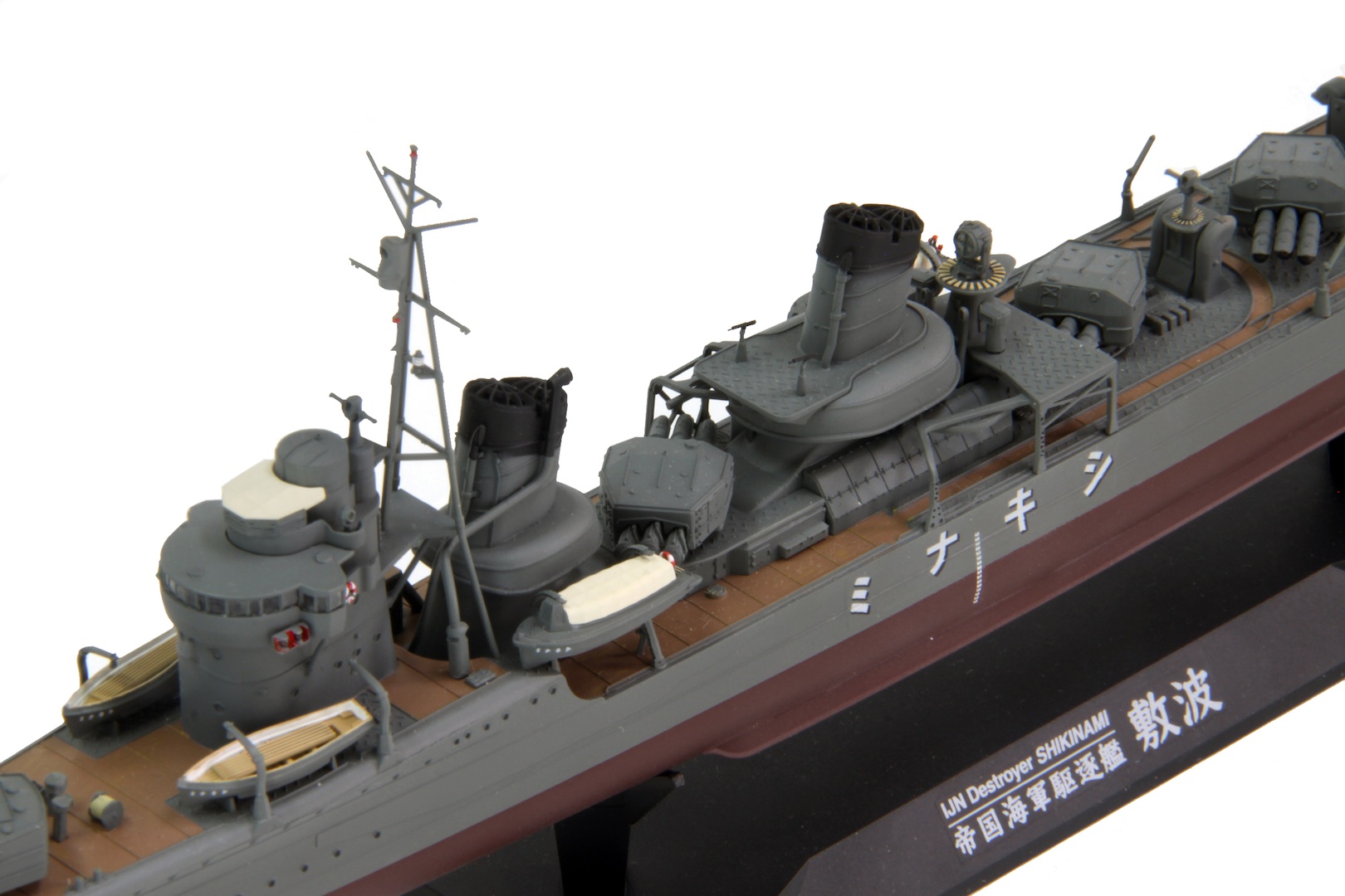 | 日本を含む第一次大戦の戦勝5ヶ国が1922(昭和3)年に締結したワシントン海軍軍縮条約により、日本は戦艦・空母さらには巡洋艦までをも所有に制約を受けることとなりました。それまでの海上防衛構想を見直す必要に迫られた海軍は、条約の制限を受けない軽巡洋艦以下の補助艦艇を増強するべく、まずは駆逐艦の拡大・増強に着手します。1928(昭和3)年に1号艦が引き渡され、以後「特型」とも呼ばれるこの駆逐艦は、従来型の駆逐艦より一回り大きな船体となりましたが、注目すべきはその大きさに比べ格段に向上した重武装と高い航海性能であり、この艦の出現は列強に衝撃を与えたとも言われています。 | |||||||||||