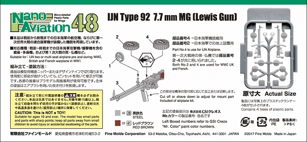 製品番号NC11 1/48スケール九二式7.7mm旋回機銃(ルイス機銃)