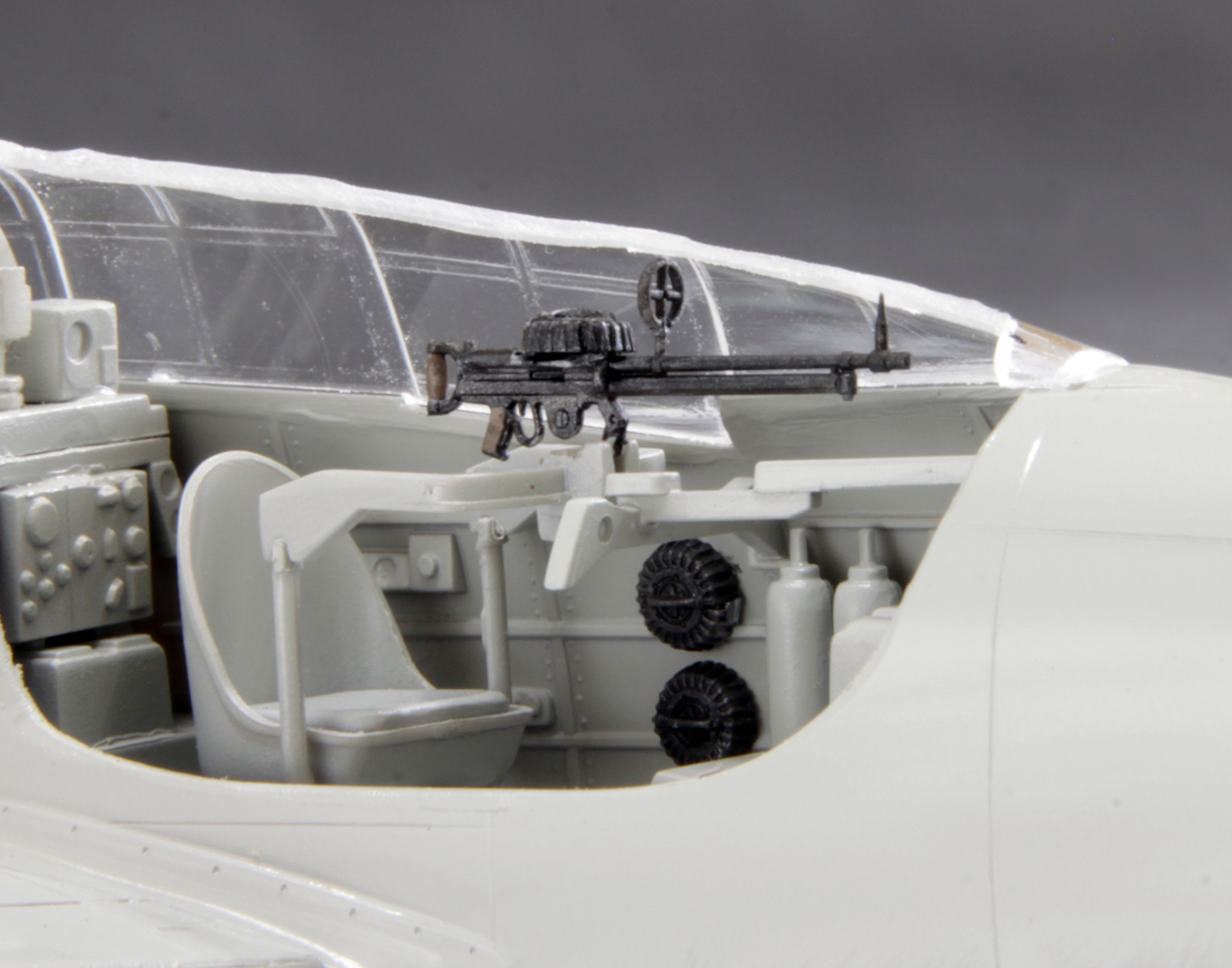 元は第一次世界大戦に連合国で使用された機銃のため、日本海軍機ほか一次大戦中の英仏軍機などにも使用できます。銃尾の握りやトリガーガードまで精密に再現。また装弾数が異なる2種類の弾倉をセットしました。