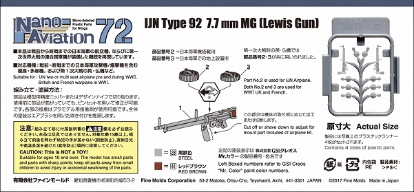 製品番号NA11 1/72スケール九二式7.7mm旋回機銃(ルイス機銃)