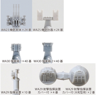 | 以上は、機銃射撃装置まで使用する艦艇です。機銃と弾薬箱のみ使用する場合はさらに多くの艦艇に使用できます。 |