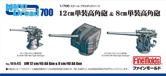大鷹型などに装備された防盾無しの選択式。8cm単装高角砲は戦前の戦艦等から大戦末期の小型艦艇に装備された砲で、詳細な考証の上立体化しました。それぞれ8門入り。 |