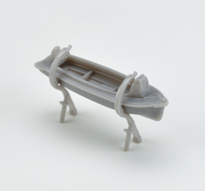 駆逐艦以下の艦艇に対応する搭載艇と、各種ダビットのセット。ラフィングボートダビット支柱にある孔の再現や7.5m内火艇の浮き輪まで再現するなど、徹底して精密性を追求しました。