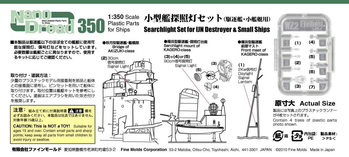 駆逐艦以下ほぼ全ての艦艇に対応する探照灯や信号灯のセットです。ナノ・ドレッドシリーズならではの精密性をぜひ実感してください。