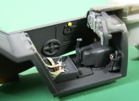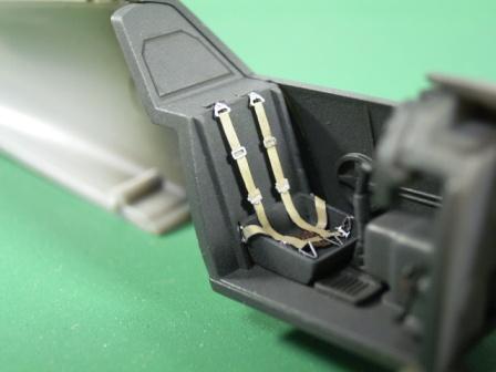 コックピットはシートベルトのエッチングパーツを使用することで随分と精密になります。