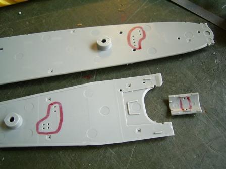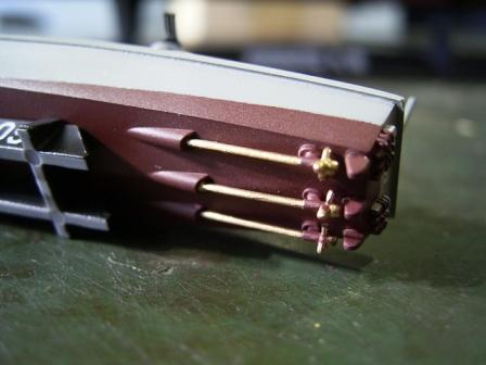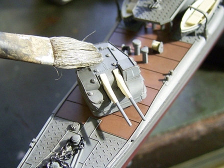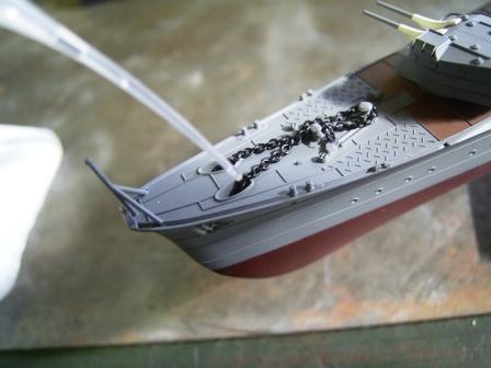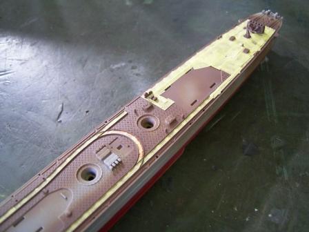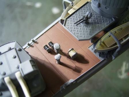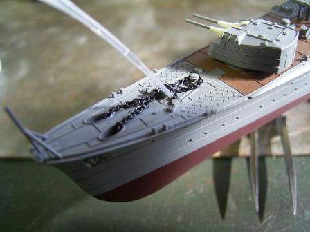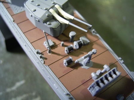 なお船首楼甲板を接着してしまうと船首楼に隠れて一部塗装出来ない部分がありますのでご注意を。 |