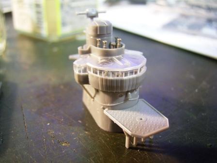 中央構造物と同様に、艦橋も同時進行で塗装するために組立てておきます。