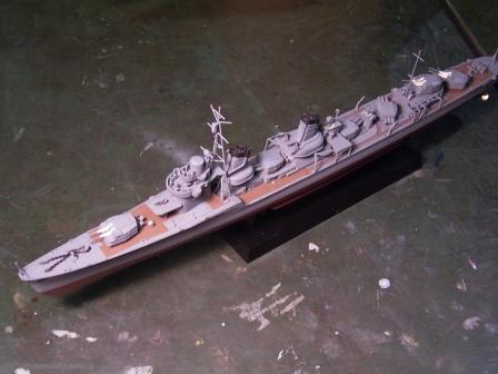 また、上部構造物(艦橋や武装など、甲板上に付けるパーツで軍艦色に塗装するもの)もまだ取り付けません。