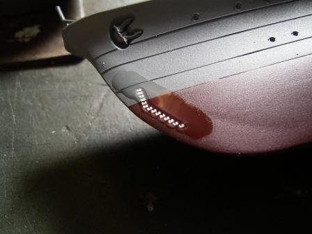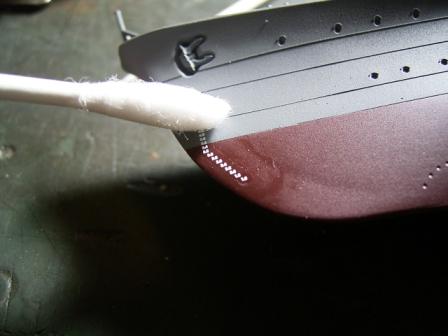 後で艦底色&軍艦色を塗るときに境目をきっちり塗り分けるので、少々はみ出しても構いません。でも塗り残しはなるべくないように!