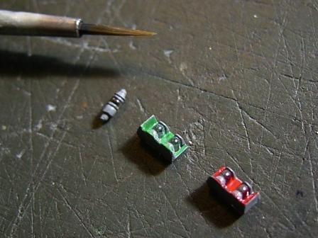 煙突先端の黒塗装を済ませ、マスキングを行っています。