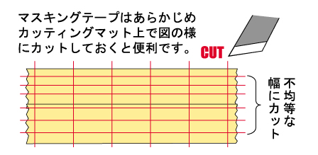 画像のような複雑な面にマスキングテープを効率よく貼っていくには、あらかじめ細かく切ったマスキングテープを貼り足していく方法がよいと思います。