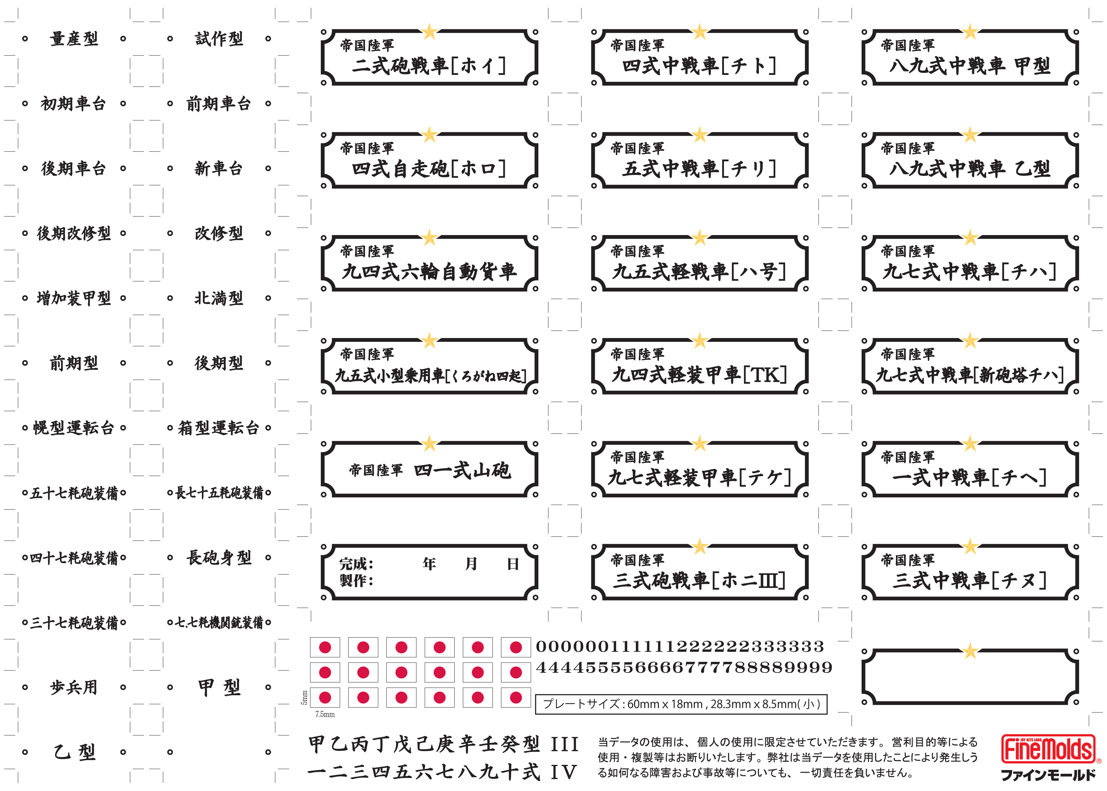 各項目に記載しているプリントサイズの紙に印刷すると、概ねキット実寸大にてプリントアウトができます。