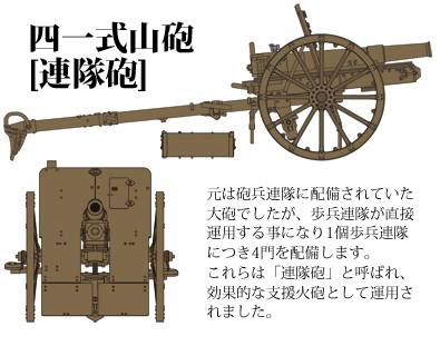 ★歩兵連隊砲として運用された四一式山砲が付属。