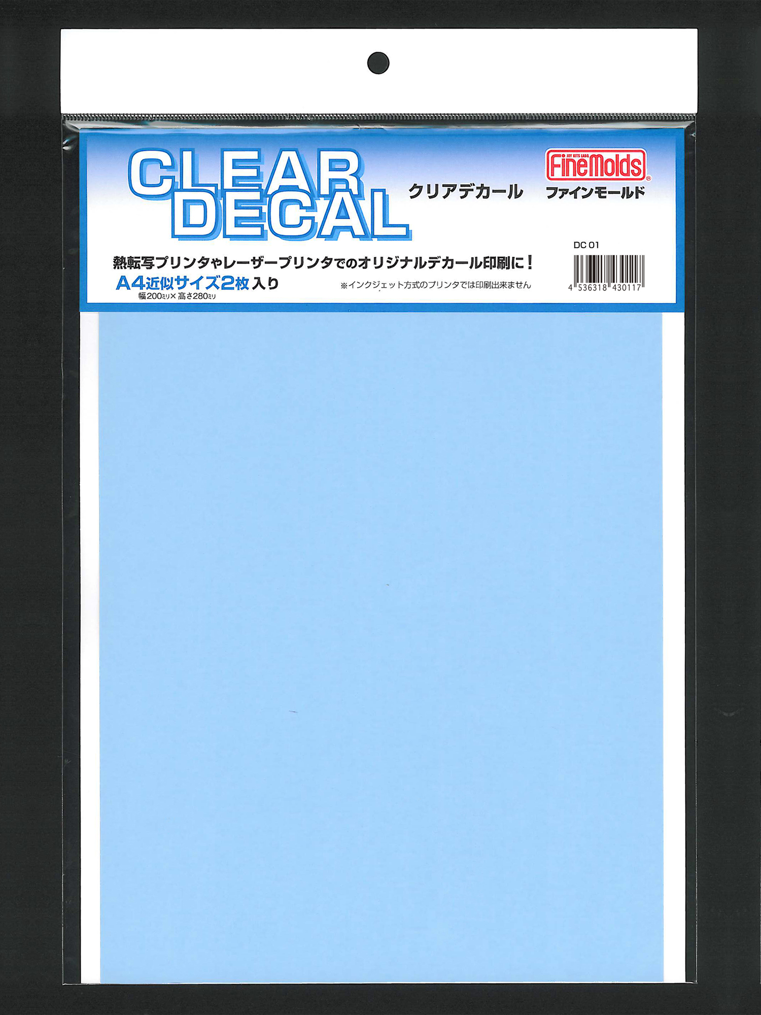 オリジナルデカール製作用の透明デカール。ご自身で製作されたデータなどをプリントしてキットに貼付して使用します。