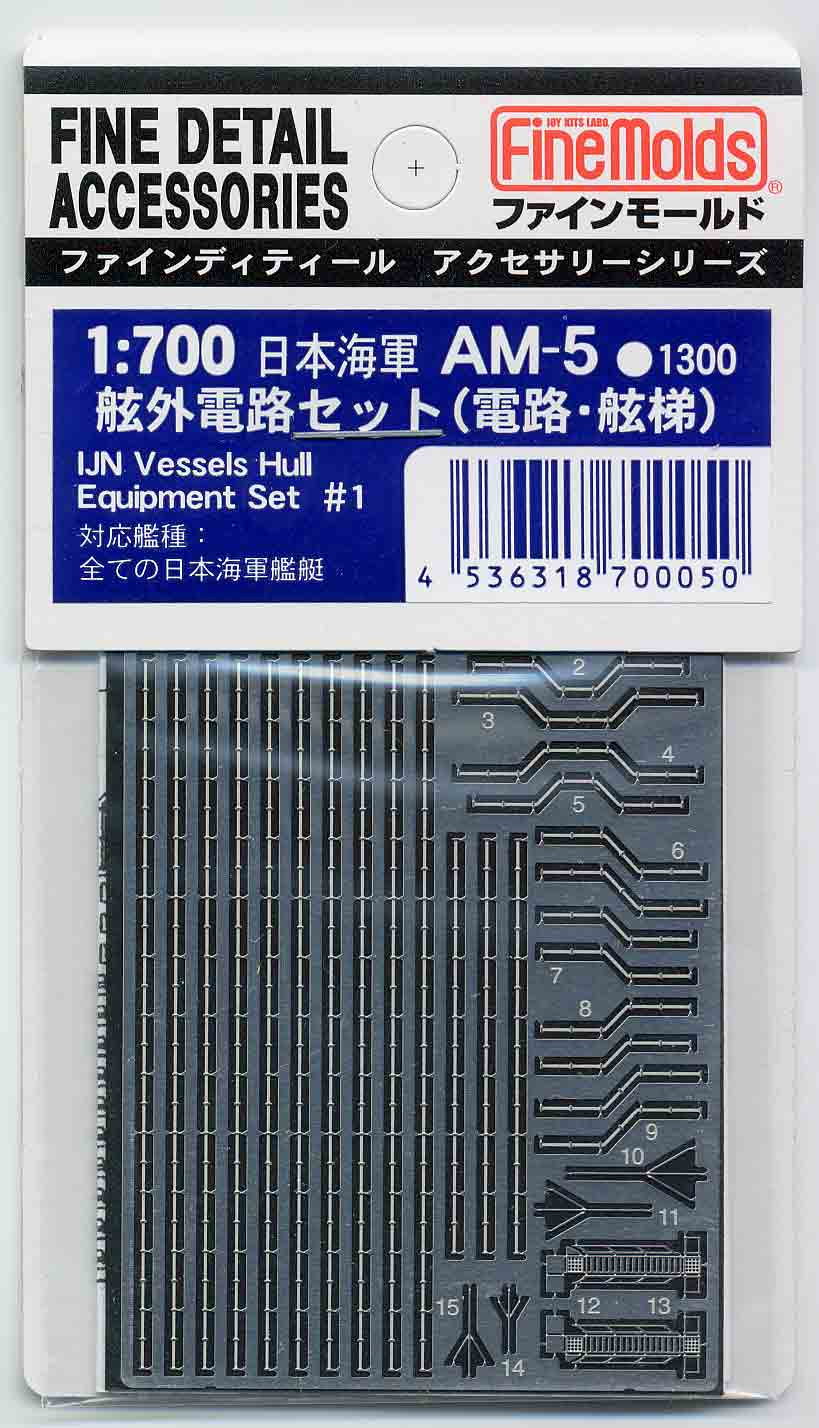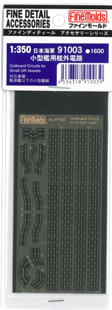 日本海軍・舷外電路セット(エッチング) 磁気機雷への対策として、大戦直前より装備された舷外電路を屈曲部まで含めてパーツ化。金型の都合上、製品では再現していないことが多い部分をパーツ化。 |