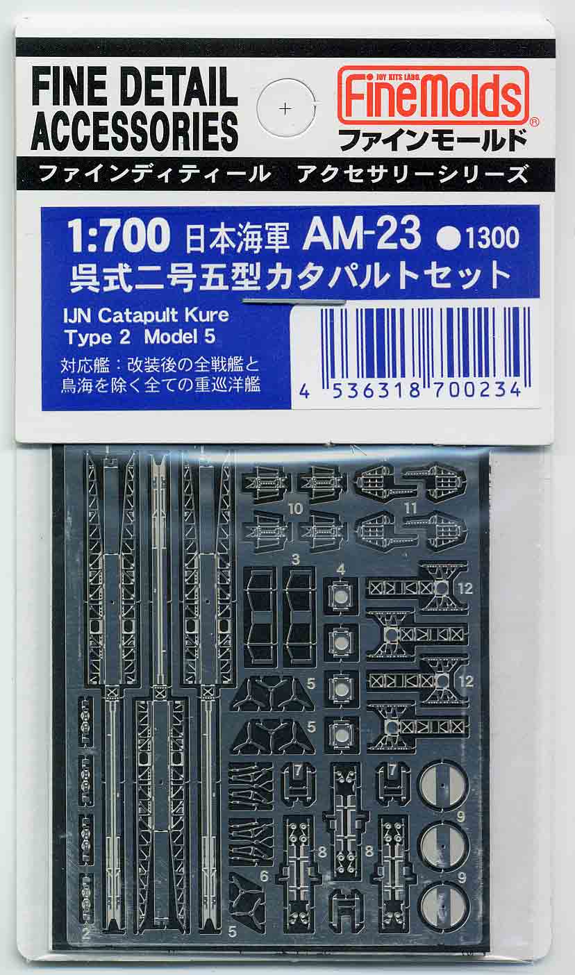 日本海軍・呉式二号五型カタパルト(エッチング) 主に改装後の重巡洋艦以上の大型艦に対応。カタパルトの他、零式水偵や零観の浮舟支柱、射出機旋回盤や3翔プロペラ他も付属。 |