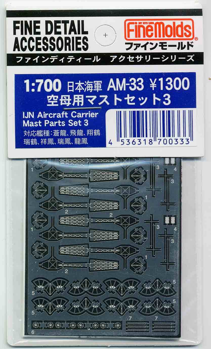 日本海軍・空母マストセット2 (エッチング) マスト本体・トップマストとマスト起倒用の駆動ギア部を再現。方位測定儀アンテナ&艦尾信号灯が付属。 |