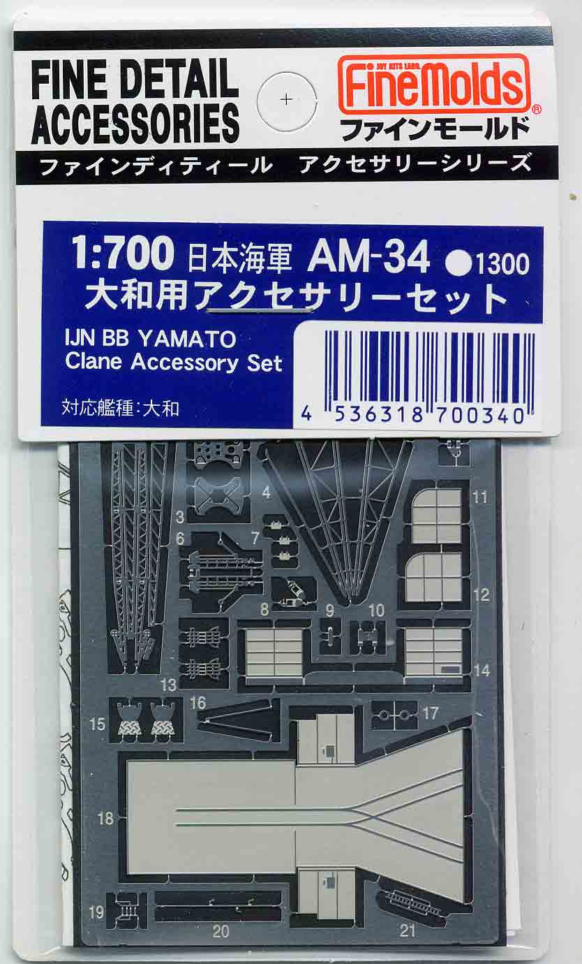 日本海軍・大和用アクセサリーセット(エッチング) 戦艦大和のジブクレーンを中心とした艦尾部分のディテールアップパーツ。艦載機を格納する格納デッキのフロアと扉部分、機銃座の階段や搭載艇格納庫扉などをエッチングパーツで再現しました。 |