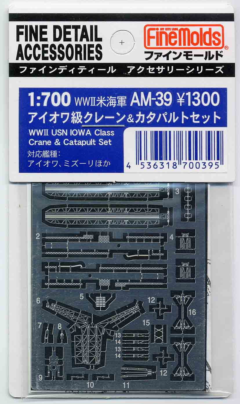 W.W.II米海軍・アイオワ級クレーン&カタパルトセット(エッチング) アイオワ級戦艦専用のクレーンやカタパルト、滑走台車をはじめFHレーダーのブラケットや搭載機のプロペラや支柱などをセットしました。 |