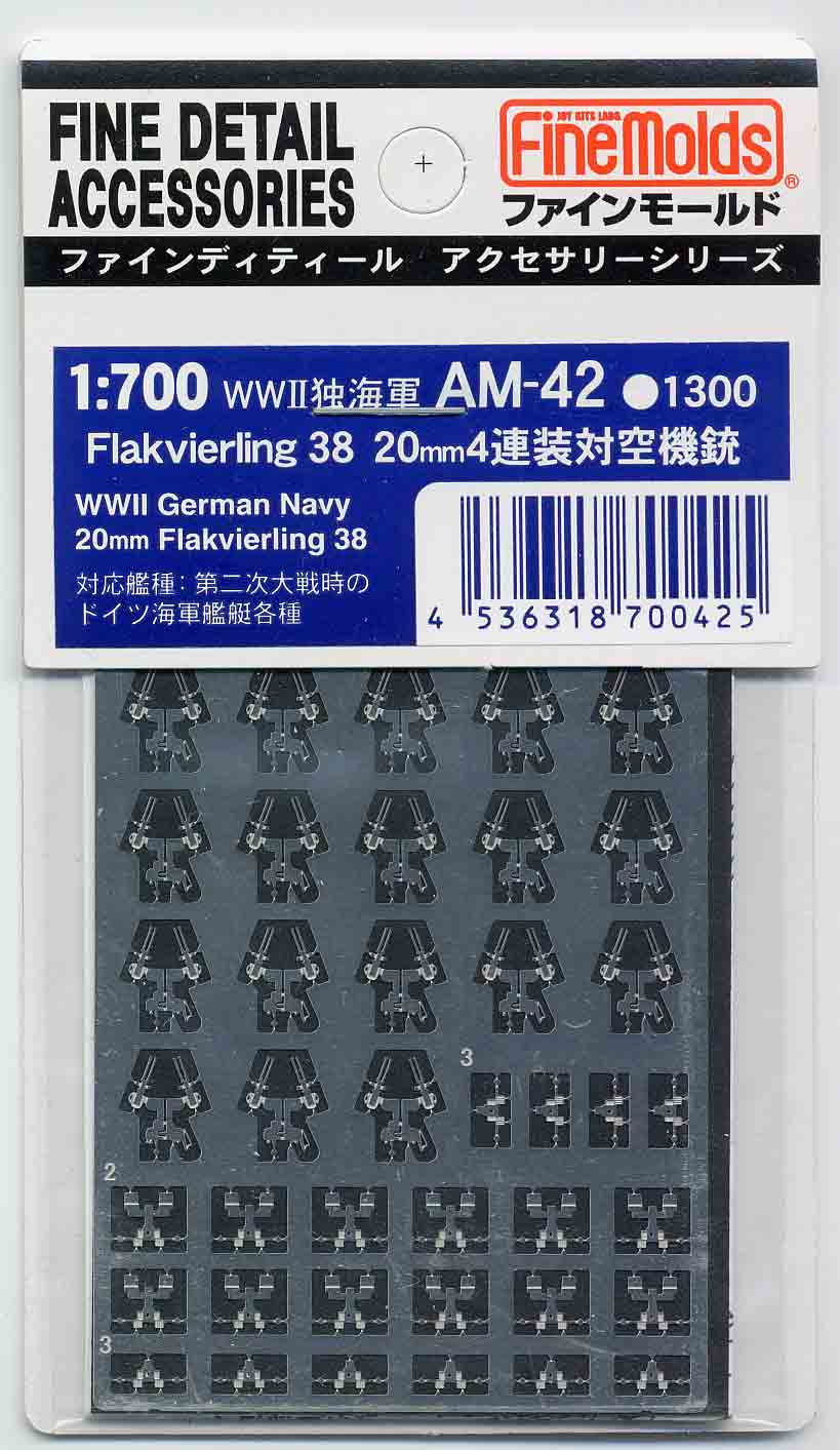 W.W.II独海軍・Flakvierling 20mm 4連装対空機銃(エッチング) W.W.IIドイツ海軍の戦艦から駆逐艦などの小型艦に至るまで幅広く搭載された4連装機銃です。防盾付きタイプと防盾の無い仕様をそれぞれ製作できます。 |