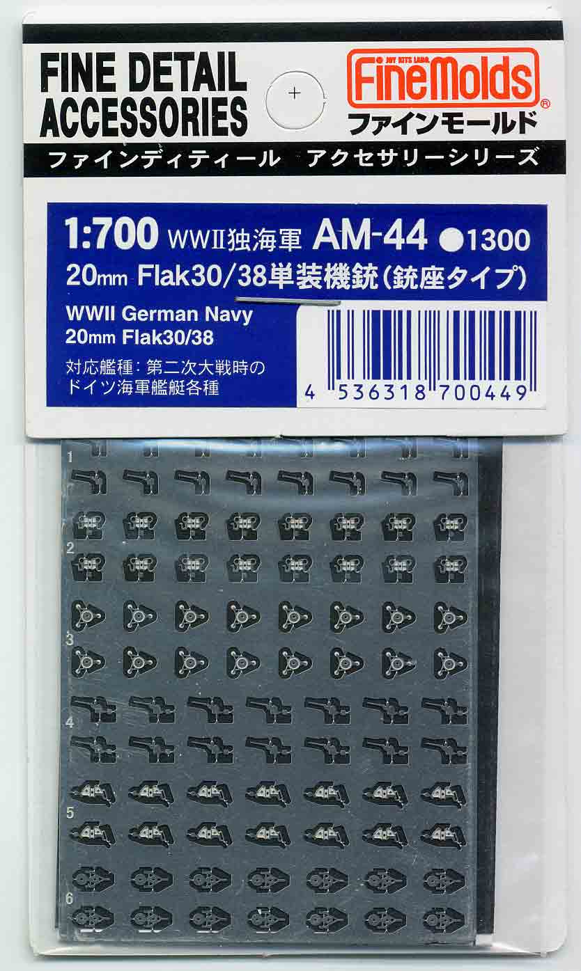 W.W.II独海軍・20mm Flak 30/38単装機銃(銃座タイプ)(エッチング) ドイツ海軍各艦艇に搭載された銃座型の20mm単装機銃です。Flak30とFlak38をそれぞれ製作できます。 |