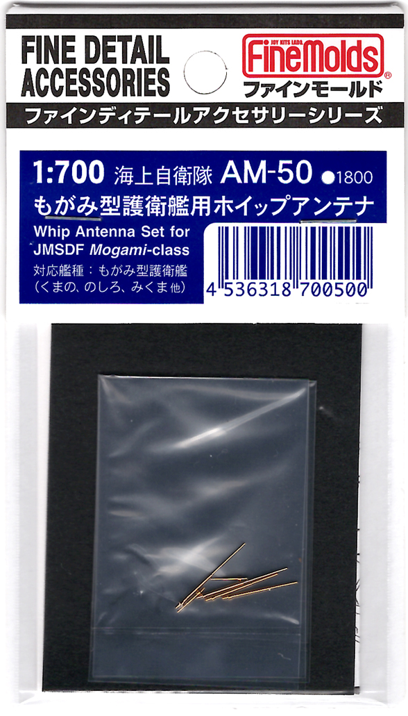 海上自衛隊・もがみ型護衛艦用ホイップアンテナ (真ちゅう製挽き物) 「多様な任務への対応能力の向上と船体のコンパクト化の両立」を求めた新たな護衛艦である「もがみ型」に備えられた、船体形状同様にこれまでとは異なった形状を持つホイップアンテナをシャープな真ちゅう製挽き物加工品で再現。それぞれ長さの異なる6本を一隻分としてセットします。 |
