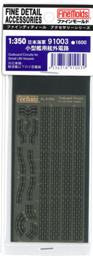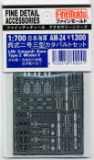 日本海軍・駆逐艦用アクセサリーセット1(エッチング) 駆逐艦を含む比較的小型の艦艇用装備品をセット。爆雷装填台3型や、爆雷投下軌条、九〇式無線電話空中線などのパーツを高精度のエッチングで表現。 |